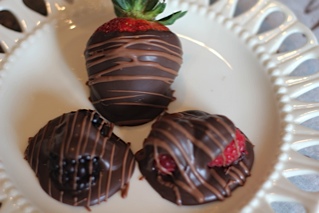 Chocolate Covered Strawberry, Chocolate Covered Raspberries, and Dark Chocolate Covered Black Berries with Milk Chocolate Drizzle.